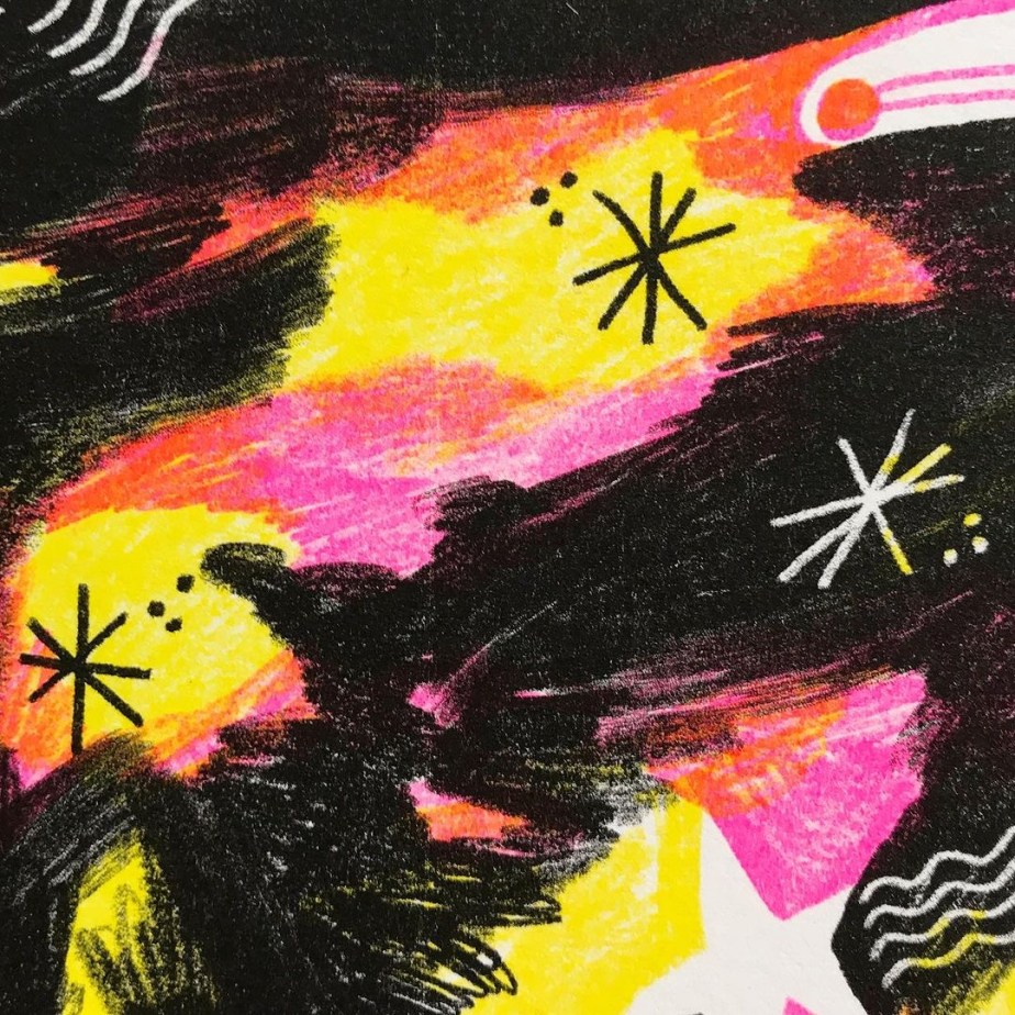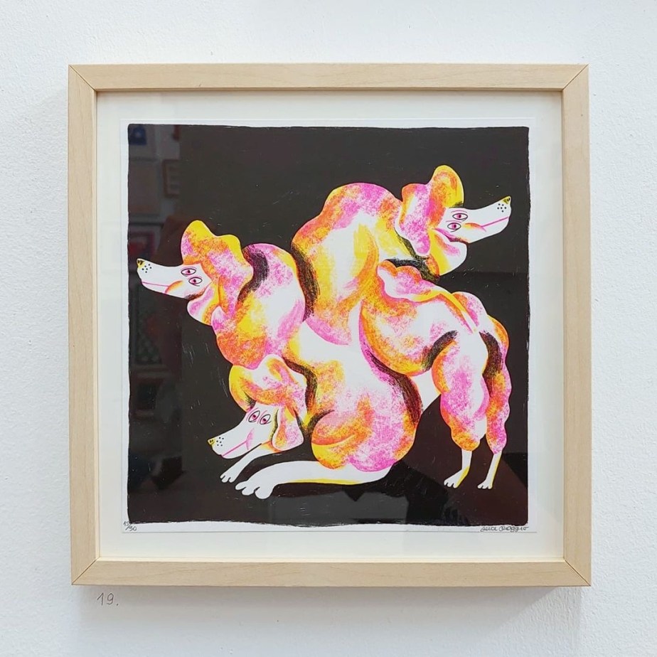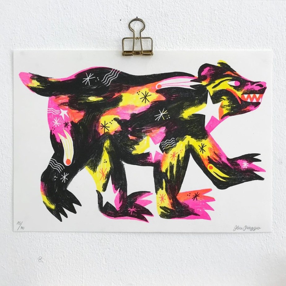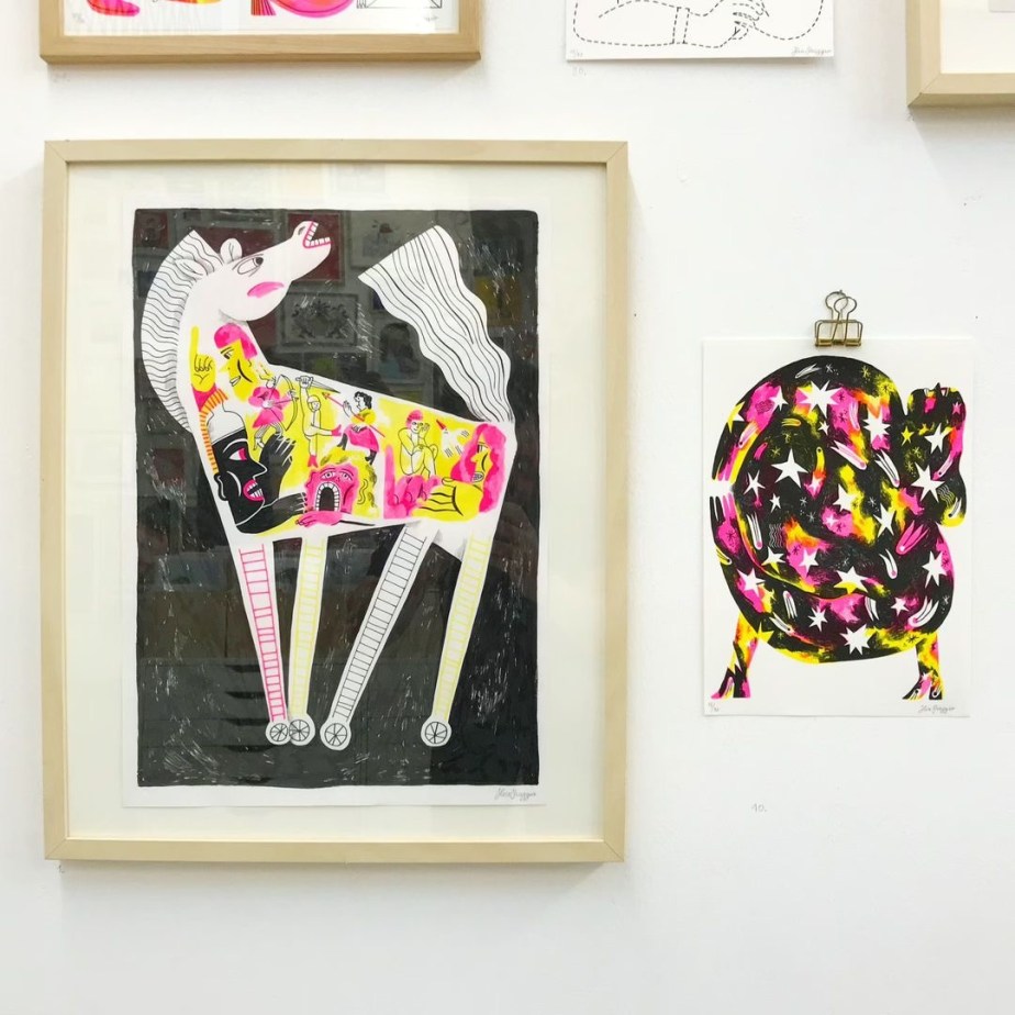 Un universo eterogeneo e ricco di contraddizioni che ho scelto di interpretare attraverso l’utilizzo di varie tecniche (dalla monotipia alla risografia) il tutto in chiave rigorosamente pop.